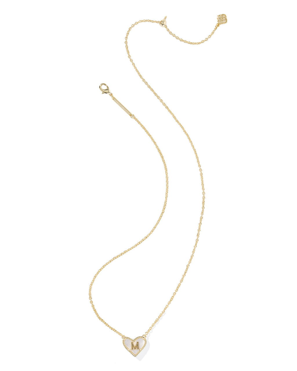 Get ready to fall in love: the Heart Letter M Gold Ivory Mother of Pearl Short Pendant Necklace is destined to be your new neck stack essential. Featuring a sweet heart shape inspired by our iconic Ari silhouette, this necklace has a personal touch with a beautiful block letter at its center. Even better? The letter is repeated on the back so you can flip it for an all-metal look.