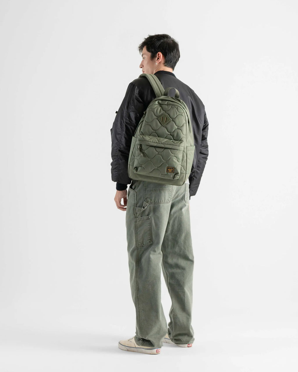 Timeless quilting. The Herschel Heritage Backpack is reimagined with lightly padded onion quilting inspired by tactical gear and vintage bomber jackets. It features contrast liner, a padded laptop sleeve and a front pocket organizer for small items.