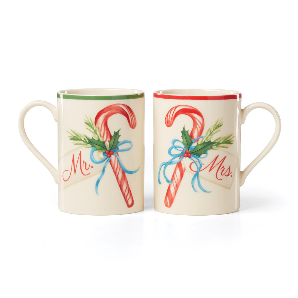 These cheerful mugs are absolutely ideal for any couple to cozy up with. Featuring the iconic red and green colors of Christmas as well as candy cane and holly leaf motifs. A cute, cursive font with "Mr" and "Mrs" is displayed across the front of each mug so you can enjoy hot cocoa or coffee as a pair. It's the perfect gift for couples and newlyweds to open on Christmas morning. Plus, they're both dishwasher and microwave safe!