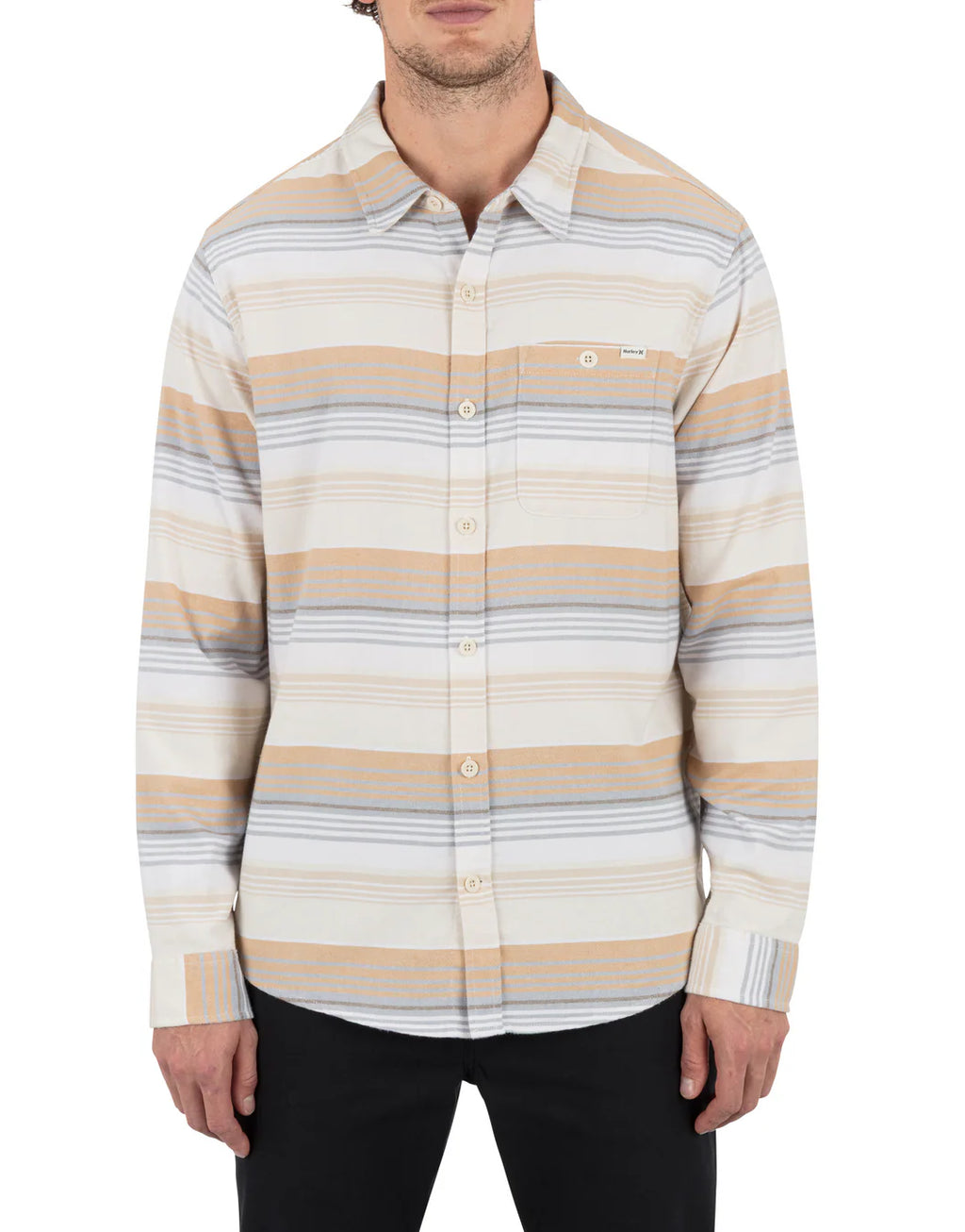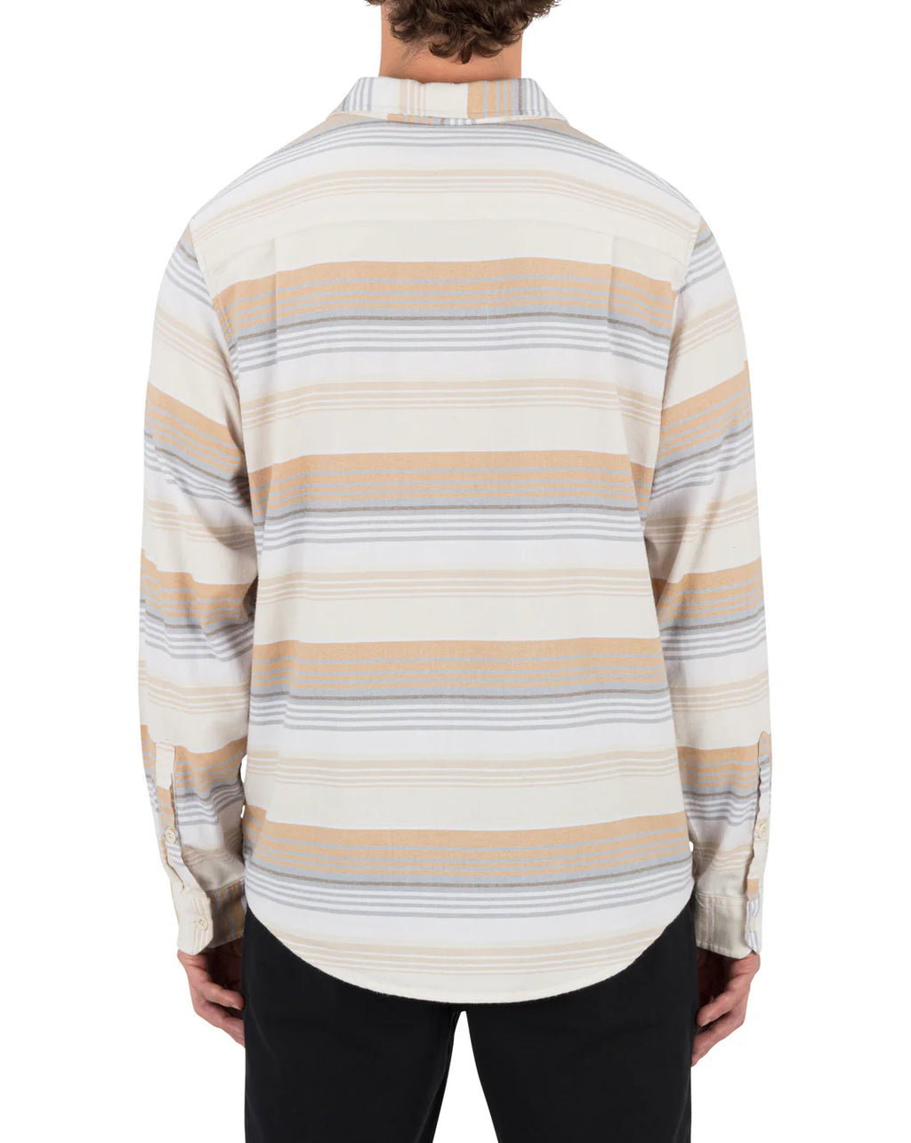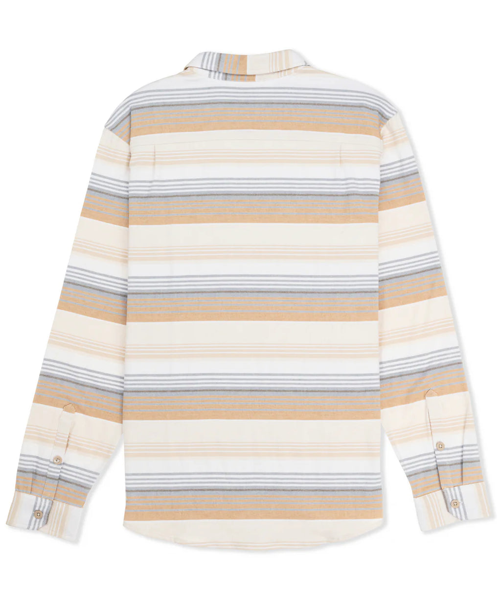 The Portland Stripe Stretch Flannel long sleeve is a cold-weather go-to with an easy, broken-in feel. Made from ultra-soft cotton stretch flannel with a touch of spandex, it moves with you while keeping warmth in. Finished with a scalloped hem, recycled polyester buttons, and a chest pocket featuring reinforced stitching, it’s built for comfort with attention to detail.