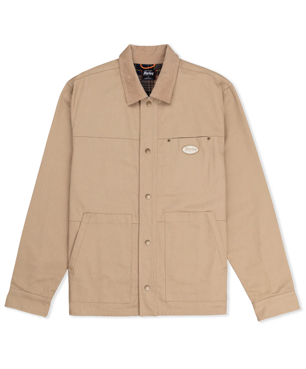 The Structure Jacket brings classic workwear styling to modern surf utility. Crafted from durable 100% cotton canvas with a soft plaid flannel lining and corduroy collar. Finished with antique brass rivets, angled patch pockets, a paracord loop, and signature Built patch.