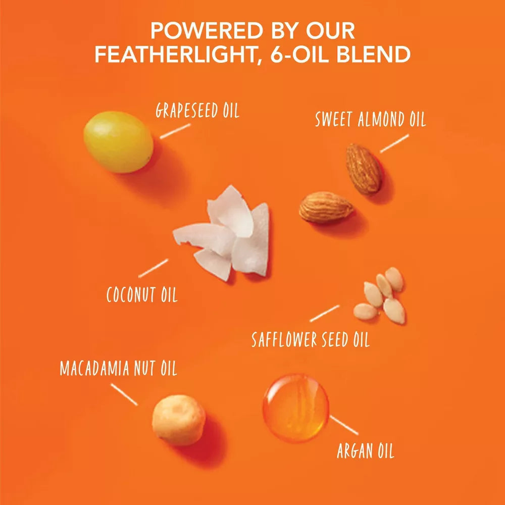 This frizz reducing, hydrating shampoo transforms dry hair, leaving it soft and smooth without the weight. Plus, it detangles to help protect against breakage. A luxurious blend of six featherlight oils helps soften, silken, tame, defrizz, detangle, and protect against breakage – without weighing hair down.