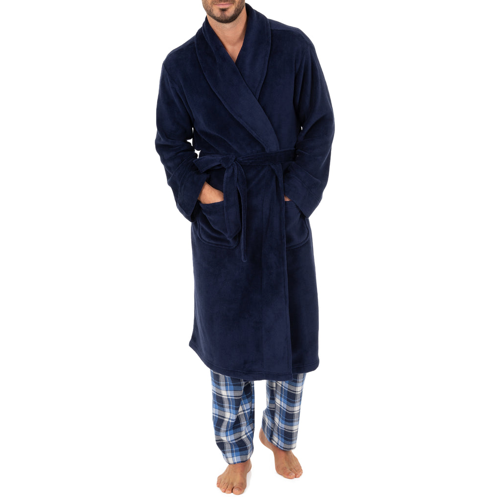 Instantly warm up chilly nights, mornings, or getting out of the shower with this Men’s Comfort-Soft Fleece Robe from IZOD. Crafted with extra-soft fleece fabric and a variety of solid colors available gives this robe has an elegant look. It is perfect to wear over your favorite pajamas for extra warmth around the house. Additional features like a shall-collar will keep your neck warm, waist tie belt for a snug fit, and two large side pockets make carrying your gadgets a breeze. From your morning coffee routine till bedtime, and anytime in between, this IZOD Men’s Comfort-Soft Fleece Robe will keep you comfortable and toasty warm all winter long.
