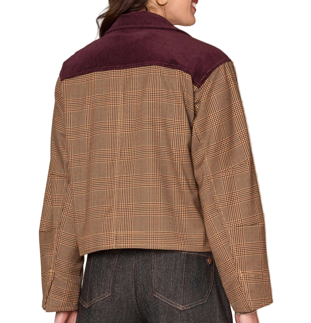 Top off your layered look with this button front plaid jacket. With long sleeves, a collar neck, buttoned pockets, and a contrast corduroy design, it’s a staple neutral style you’ll wear again and again.
