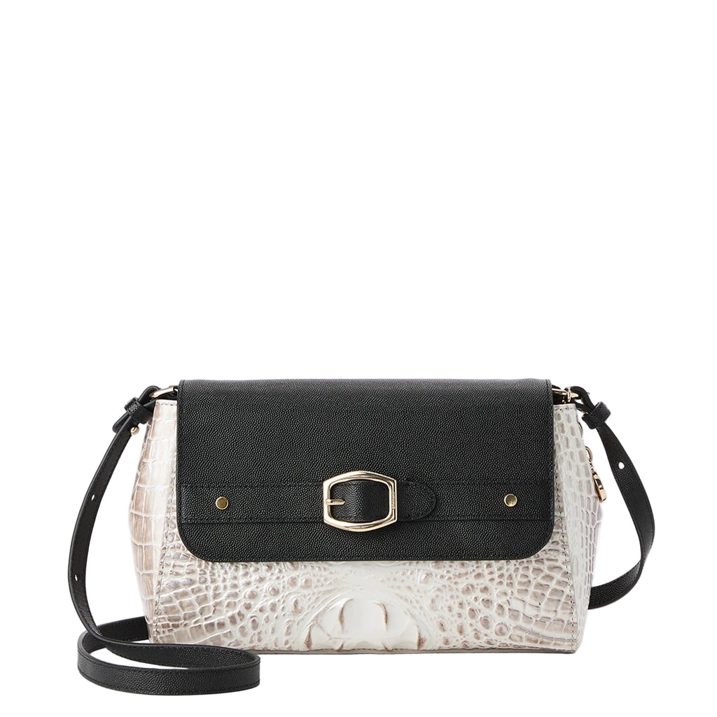 Featured in Winter White Minden, a remake of a best-seller. This striking new iteration of a well-loved collection combines an effervescent iridescent white with a bold, rich black. The trending buckle accent is embellished with stud detailing for added sophistication. Made with genuine leather.