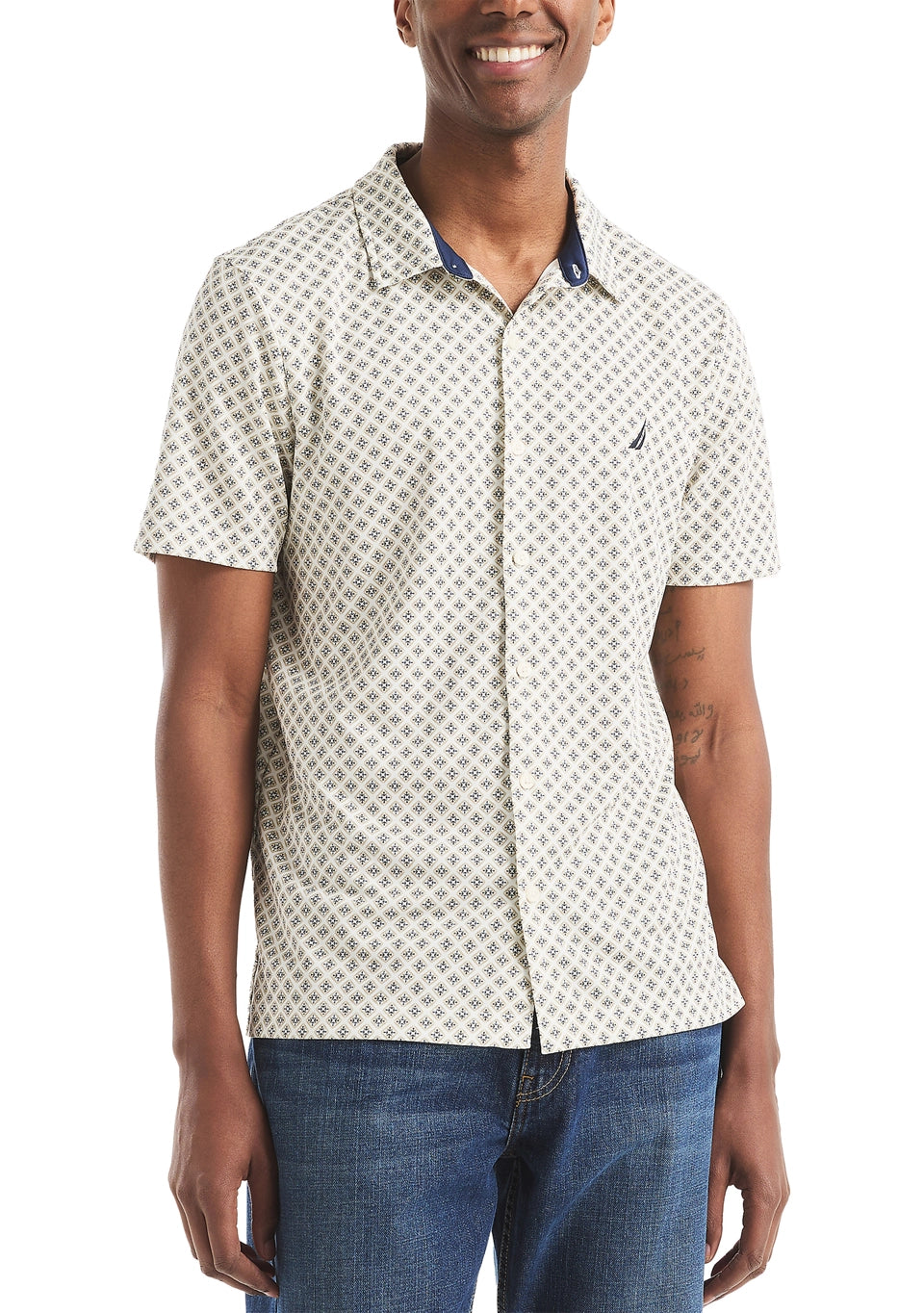 This stylish button-down shirt from Nautica is a preppy-casual option that's perfect for warm weather. The eye-catching geometric print adds a touch of modern flair to your wardrobe.