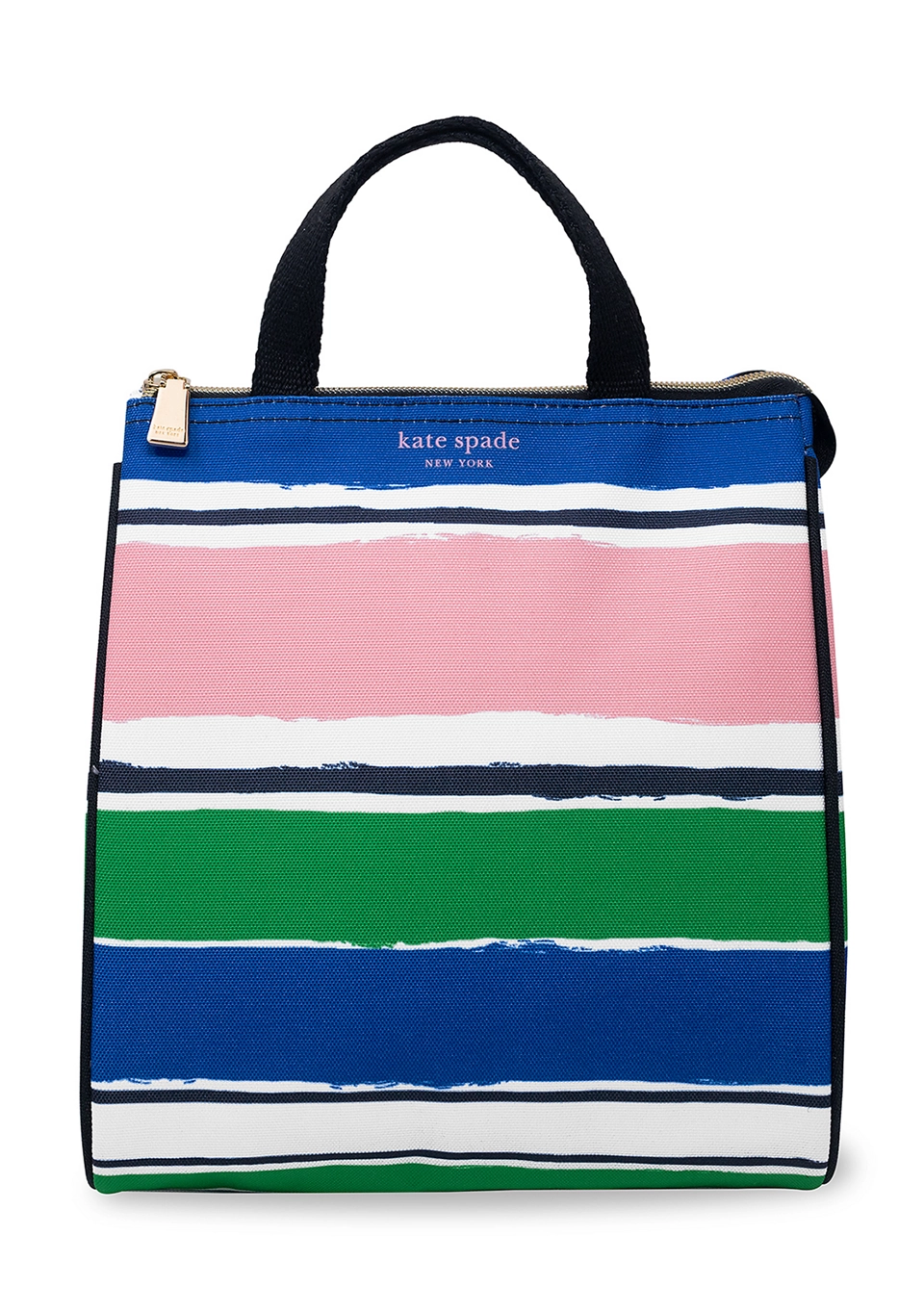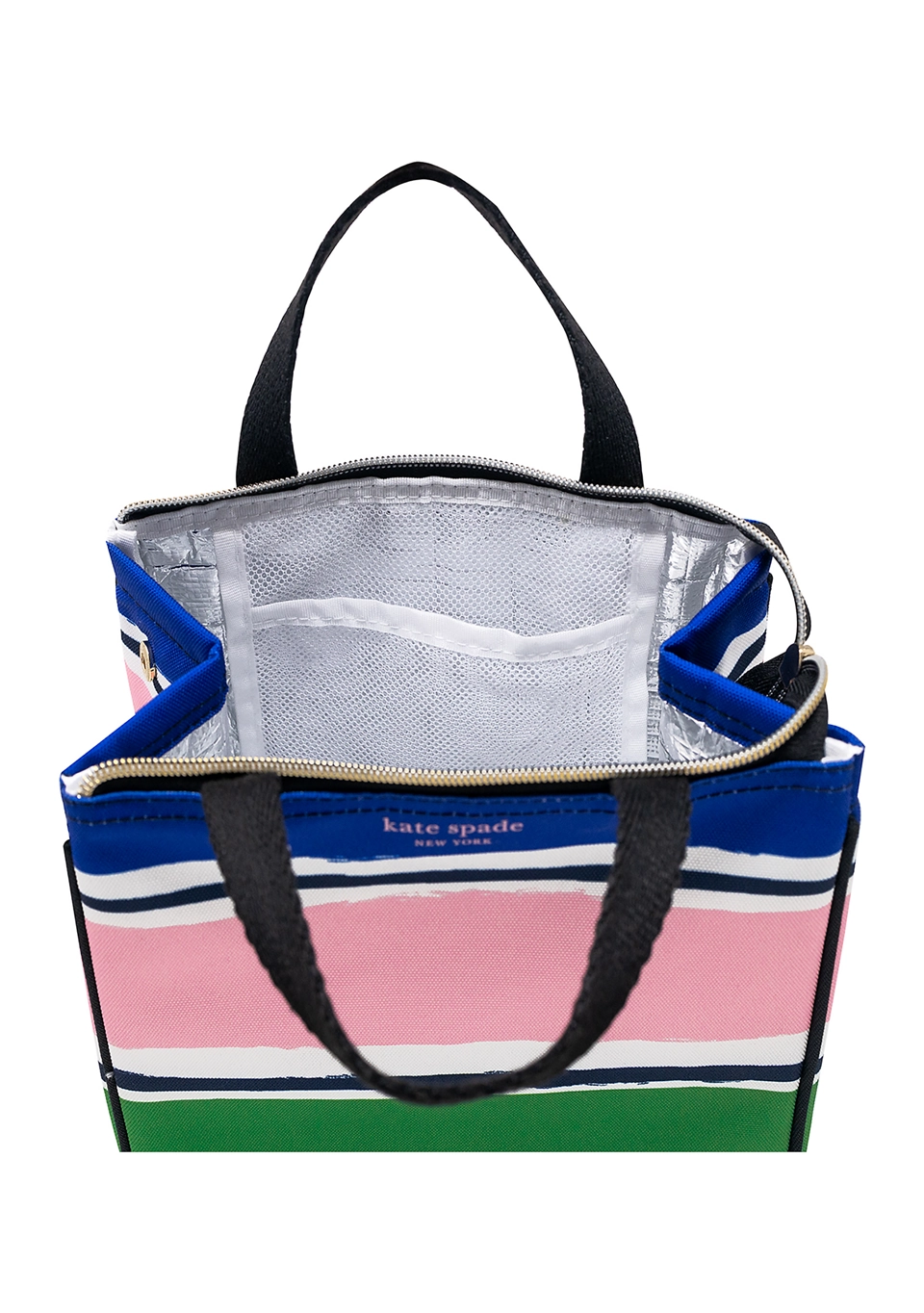 This insulated lunch bag from kate spade new york is crafted from durable material, ensuring longevity and easy maintenance. Its spacious interior accommodates your meals and snacks, while the interior pocket provides additional organization for utensils or napkins. Equipped with double handles for comfortable carrying and a secure zip closure to keep your food fresh and safe during transport. Enjoy a delightful lunchtime experience with this stylish and functional lunch bag, designed to make your mealtimes more enjoyable.