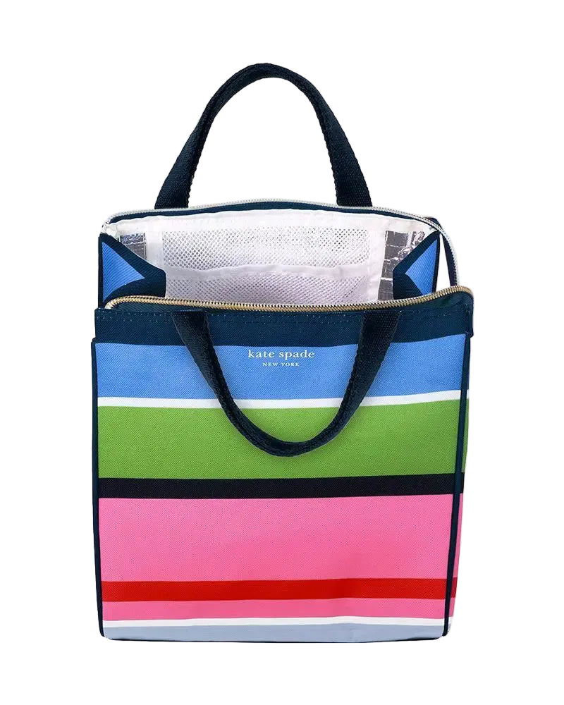 Keep your lunch nice and cool (or warm) on the way to your favorite picnic spot with this vibrant lunch bag from kate spade new york. The interior silver lining provides plenty of insulation, and the zipper closure keeps the bag securely sealed until it's lunch time!