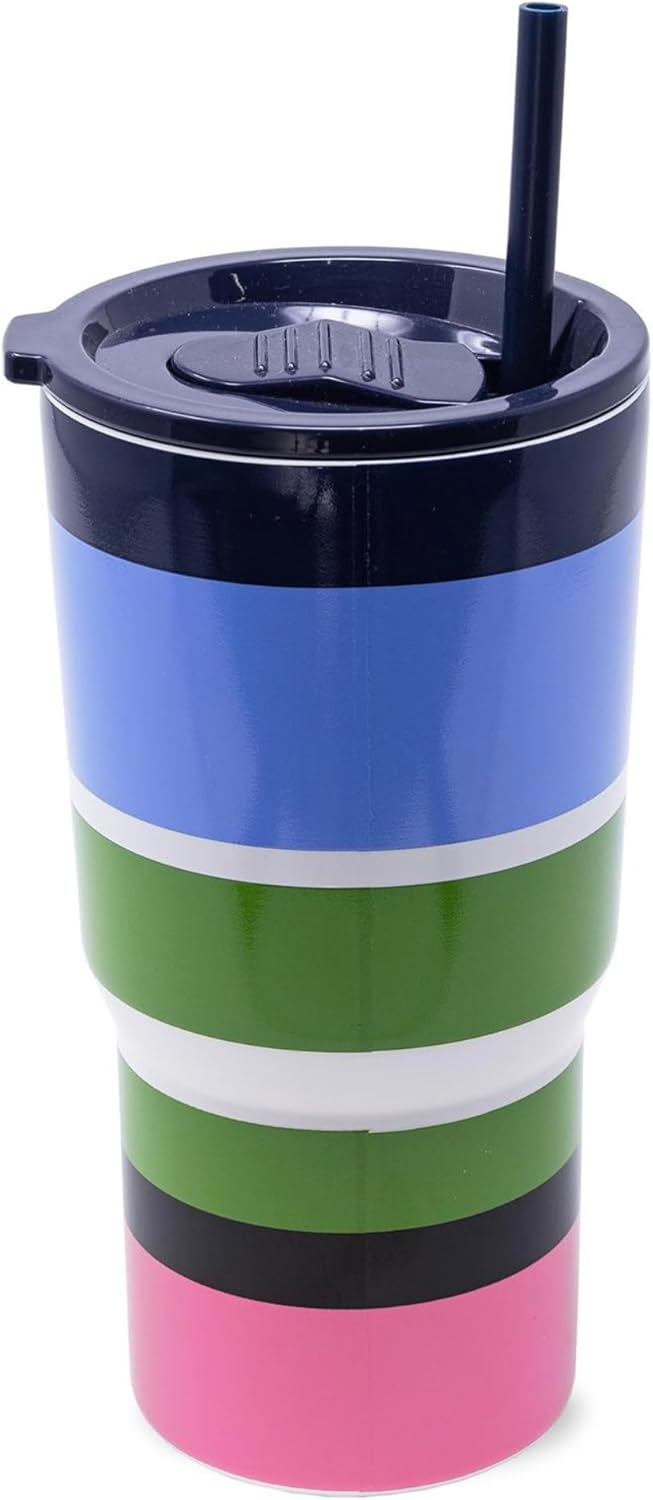 Enjoy your hot or cold beverage in Kate Spade New York's colorful Sunny Day Stripe tumbler. It comes with a straw, too—perfect for both stirring and sipping.