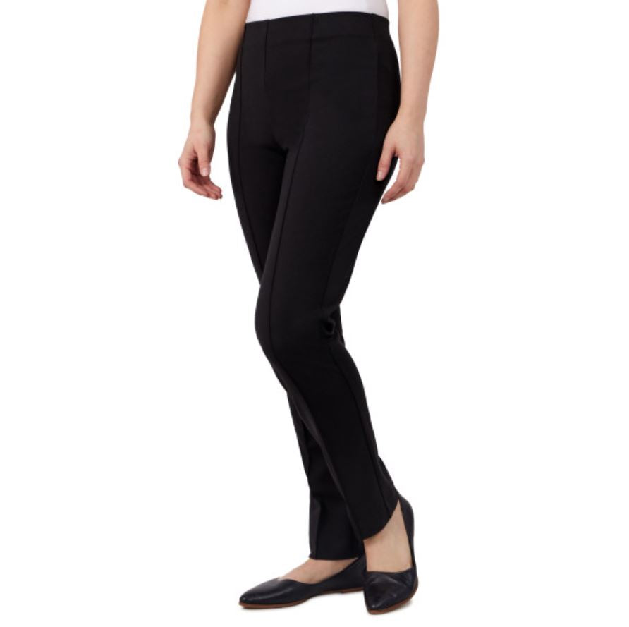The fit on these pants is so flattering! The pull-on ponte design is accentuated by front seams and a longer length. Wear with boots or flats for a polished look.