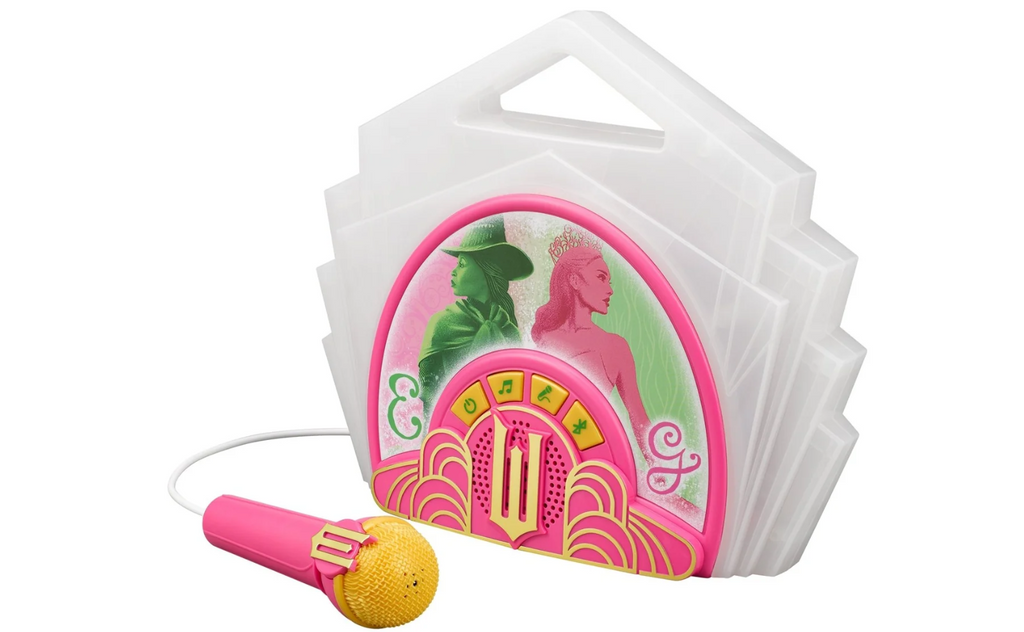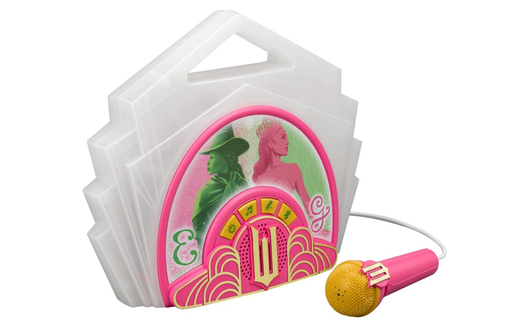 The Wicked Bluetooth Sing Along Boombox has everything you need for lots of karaoke fun! Connect your music device via Bluetooth and play all your favorite songs through the built-in speaker, then use the real wired microphone to amplify your voice as you sing your heart out. Plus, you can sing along with extended clips of the songs 'Popular' and 'Defying Gravity'. With a cute and kid-friendly design, any fan of Wicked toys can be a karaoke superstar!