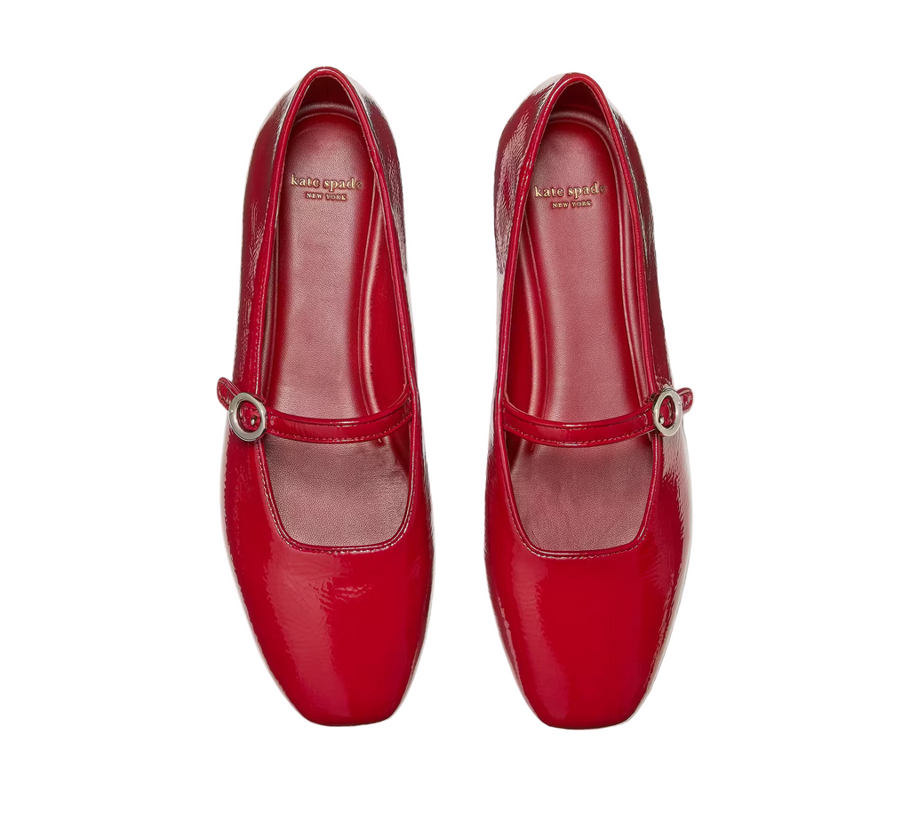 Our Halo collection is named for its unique ring-shaped hardware—an archival detail that dates back to Kate and Andy Spade's early days in business. Here, we've used the hardware on a pair of mary jane flats.