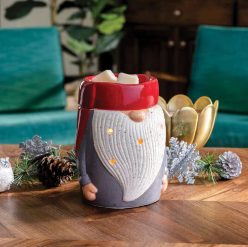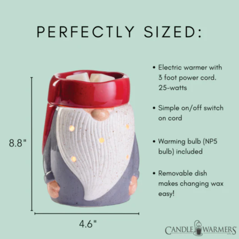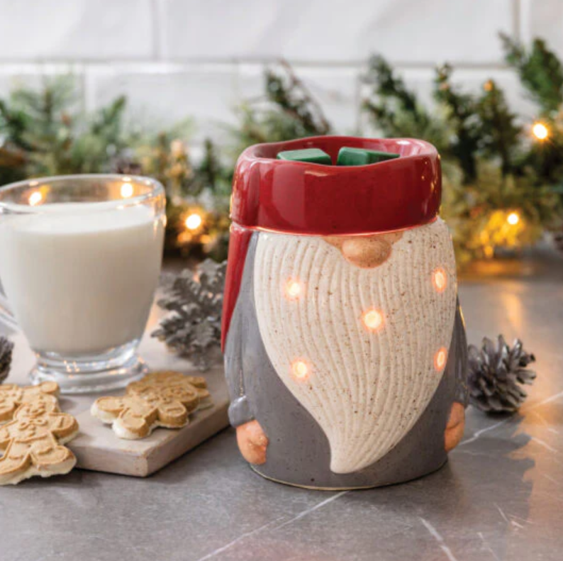 DESIGN: Add some holiday cheer to your home with The Gnome Illumination Fragrance Warmer. Crafted from speckled ceramic and a glossy glaze, this warmer features adorable details like gnome hands, a signature hat and beard, and a round nose for spreading holiday cheer