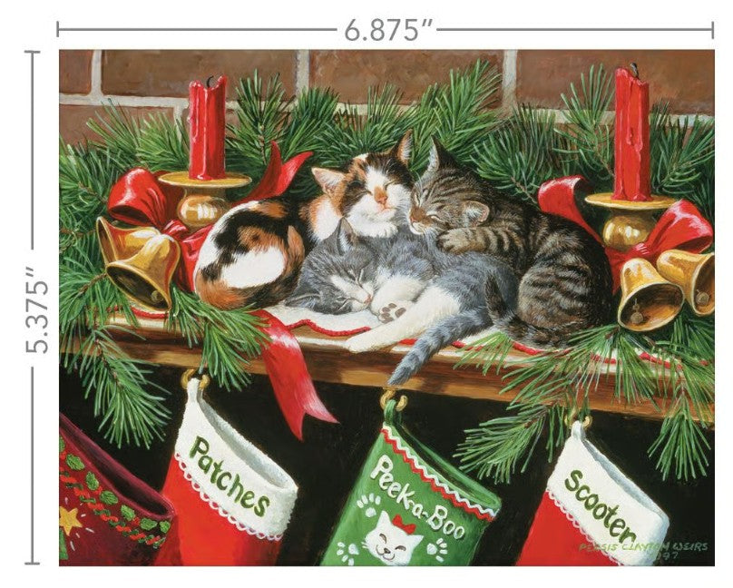 Celebrate the festive season with the Waiting For Santa Boxed Christmas Cards, featuring the charming artwork of Persis Clayton Weirs. These delightful cards showcase a serene scene of cats nestled among holiday decorations, perfect for sending warm wishes to loved ones. Each card is crafted with LANG's signature linen embossed paper stock and adorned with foil embellishments, adding a touch of elegance to your holiday greetings.