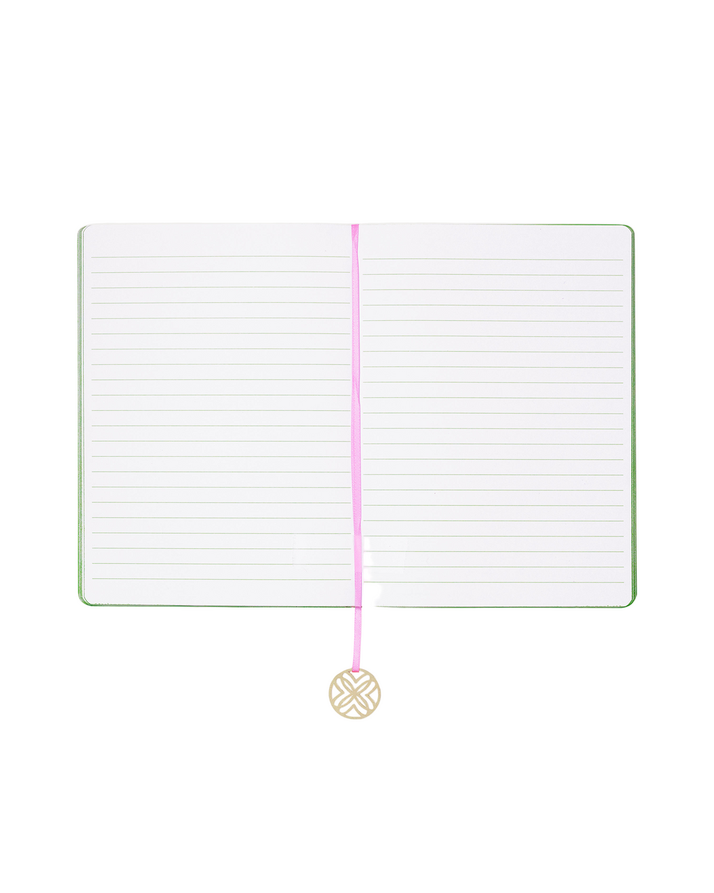 Product Details:Journal with 160 lined pages and a ribbon bookmark with a gold metal leaf charm.Measures 6" x 8".Please note: due to the vibrancy of Lilly Pulitzer colors, this product’s color may vary slightly when seen in person.