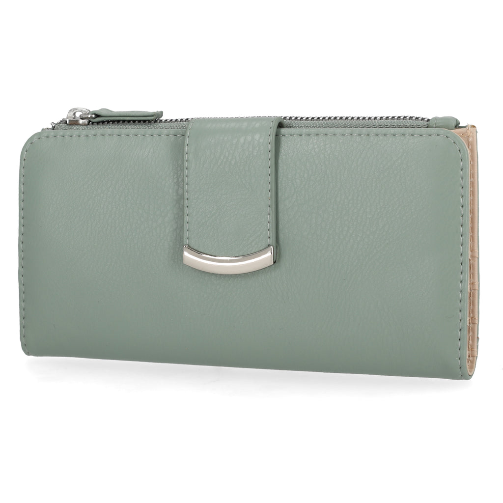 Tab closure slim clutch that can hold all your daily essentials but not bulky.