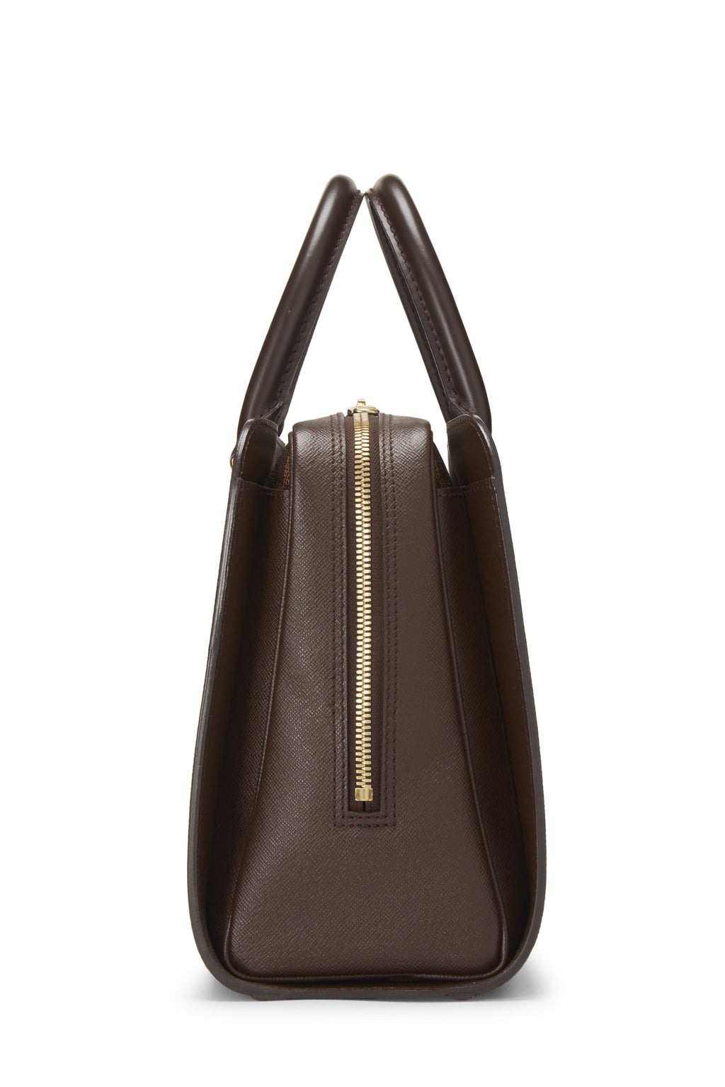 Product Details:Two leather top handlesZip around closuresLength: 10.25"Height: 8.75"Depth: 4.5"
