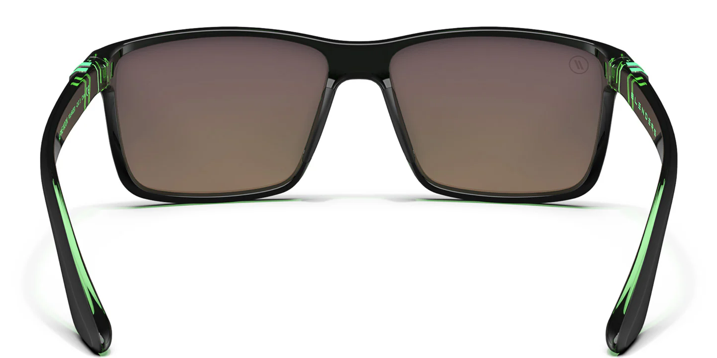 Just like you, ’Alpine Moon’ is ready for anything. Part of our ‘Mesa’ collection, it has a mountainous reputation for excelling in the elements. The frame is tough as nails despite sporting a sleeker, thinner body than seen in our other active collections, and double-injection nose pads prevent slippage as you seek adventure. Vivid green polarized lenses boast 100% UVA & UVB protection, and as an added touch, the gloss black exterior is laced with lime on the interior for a fun twist on a durable mainstay.