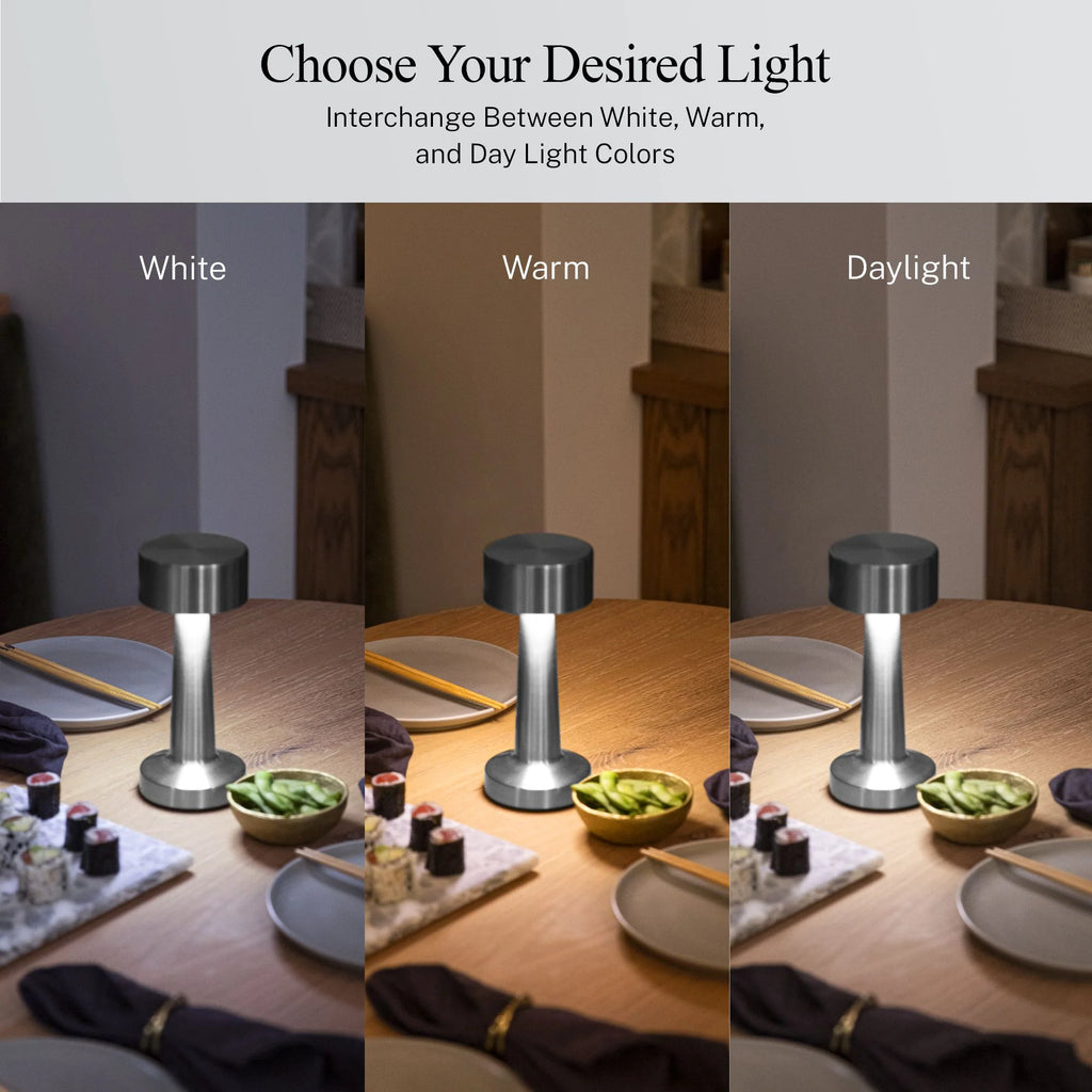 Illuminate your space with Chelsea, the cordless table lamp designed for style and convenience by Bell plus Howell by Design. With 3 versatile light modes-warm, white and natural daylight-it effortlessly sets the mood for any occasion. Simply tap to turn on/off and adjust the brightness to your liking. And when the light fades, just connect the USB cord for a quick recharge. Weighing in at under 1 lb., it's light-weight and portable, making it the perfect companion wherever you go. Featuring a modern aesthetic with an industrial vibe, Chelsea exudes a minimalist, low-profile charm in any setting. Whether you're nestled in a cozy reading nook or creating an intimate dining ambiance at a restaurant, Chelsea is poised to illuminate your space with sophisticated allure.