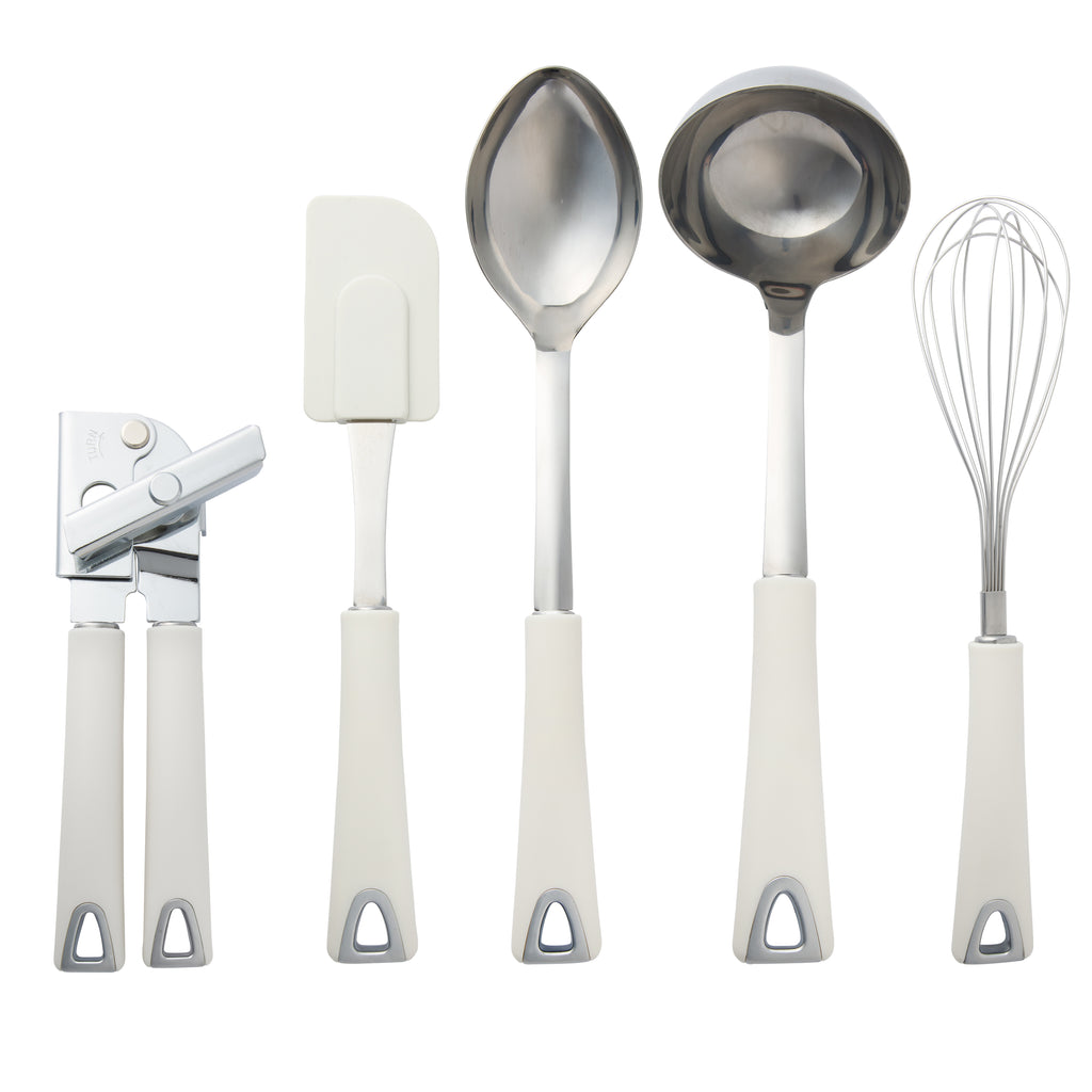 Includes Ladle, Spoon, Turner, Scraper, Whisk & Can Opener