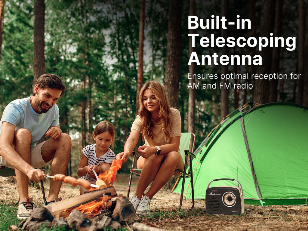 The Retro AM/FM Radio has a built-in speaker for optimal sound quality and is formatted into easy-to-read dials for easy operation. Its compact design makes it easy to carry with you.