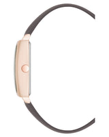 Product Details:Case: Rose Gold Square (28mm x 35mm)Dial: GreyBezel: Rose goldIndex: SticksBand: Grey Vegan leatherClosure: BuckleWR: Splash resistant