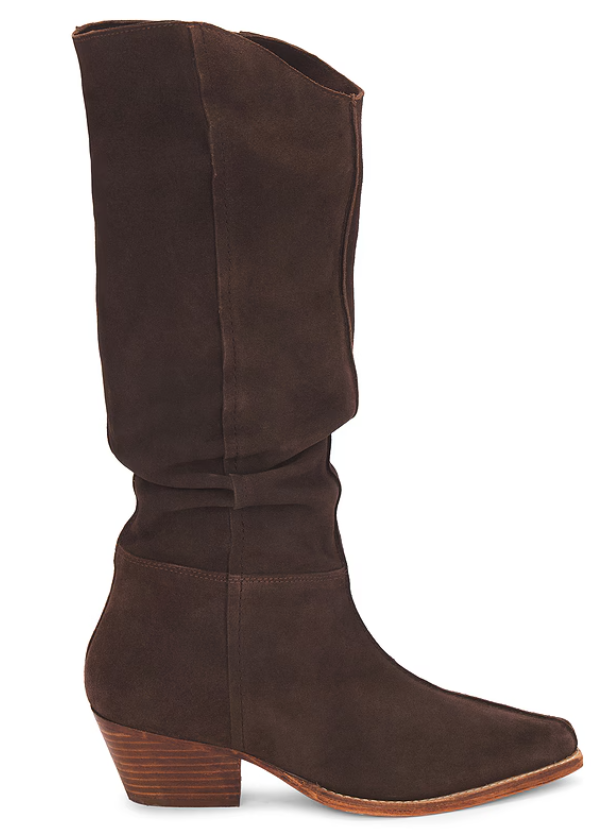 Free People invokes a spirit of femininity and creativity. It’s all in the details with this slouchy, Western-inspired boot, featured in a soft suede fabrication