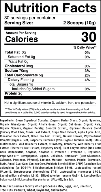 In fact, Opti-Greens 50 includes low-temperature processed, 100% organic grasses, non-GMO, non-synthetic botanical superfoods, phytonutrients, digestive enzymes, and probiotics to create the most complete greens powder on the market.