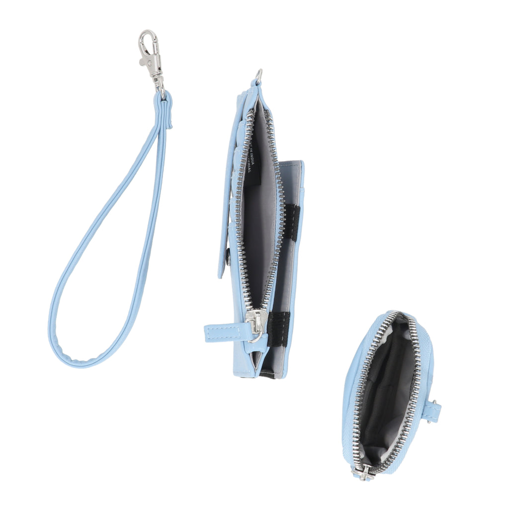 Product Details:Wristlet strap.5 card slots.1 ID window slot.Zipper and coin pouch.