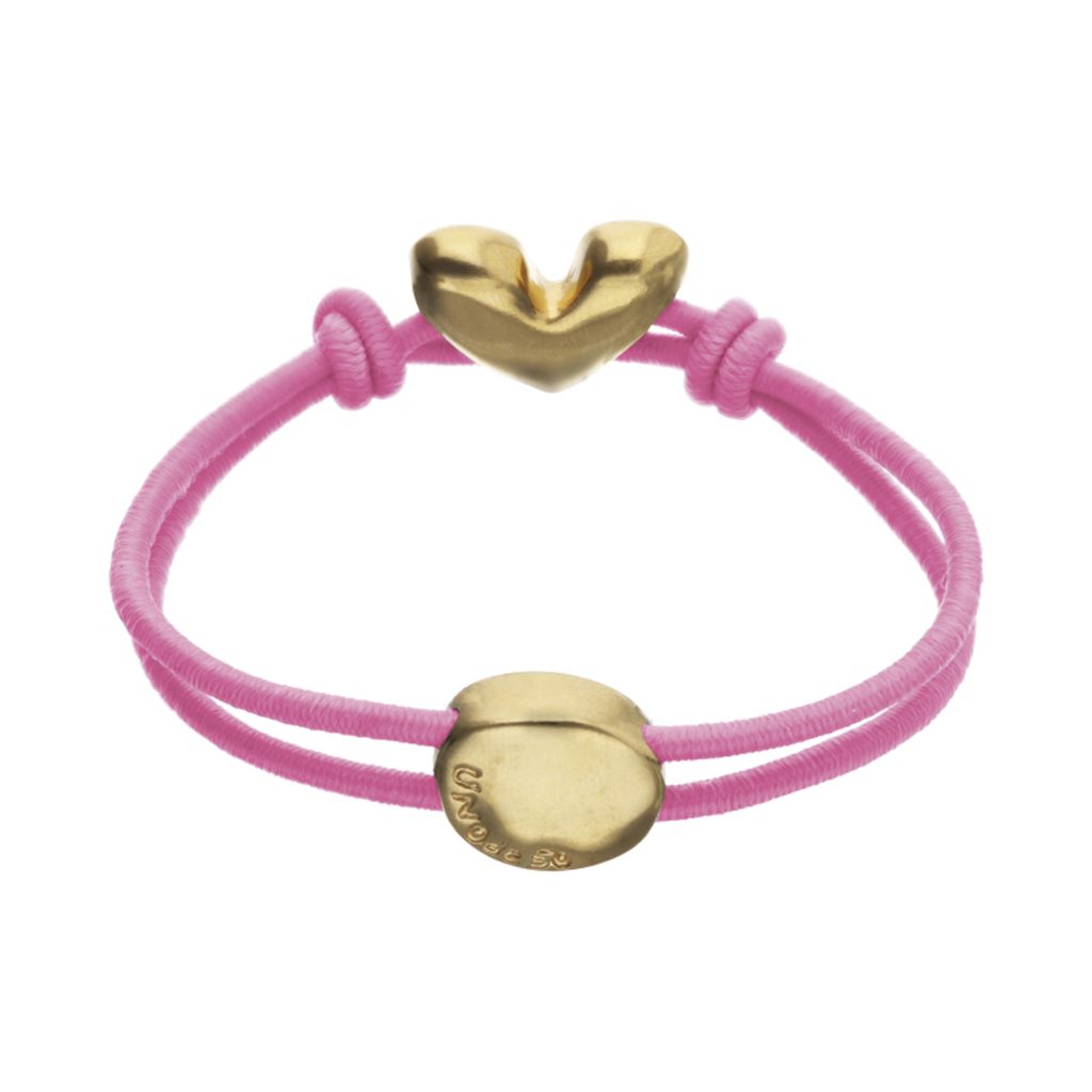UNOde50 Pink Elastic Thread Gold Heart Charm Bracelet - Medium