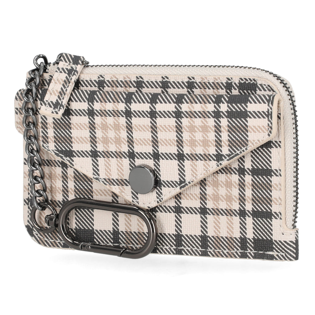 Product Details:Front snap compartmentZipper closure3 card slots2 ID window slots