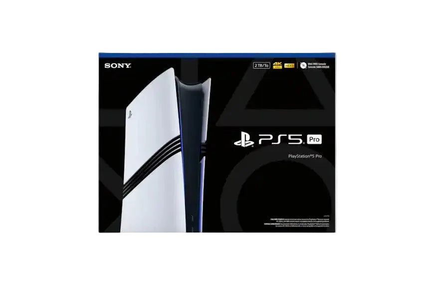 With the PlayStation 5 Pro console, the world’s greatest game creators can enhance their games with incredible features like advanced ray tracing, super sharp image clarity for your 4K TV, and high frame rate gameplay. That means you get to play PS5 games with the most impressive visuals ever possible on a PlayStation console, and with 2TB of SSD storage included, your favorite games will be ready and waiting for you to jump right in for your next awesome adventure. PS5 Pro is an all-digital console with no disc drive. Sign into your account for PlayStation Network and go to PlayStation Store to buy and download games. You can also add a Disc Drive to your PS5 Pro console if you would like to play PS5 or PS4 games on Blu-ray Disc, or if you want to watch movies and shows on 4K Ultra HD Blu-ray Discs, Blu-ray Discs, and DVDs. The compatible Disc Drive is sold separately. *Features only available on select PS5 games that have been enhanced for PS5 Pro when compared with PS5. PS5 Pro enhanced features will vary by game. A portion of the SSD is reserved for system software and other functions so the available SSD capacity may vary.
