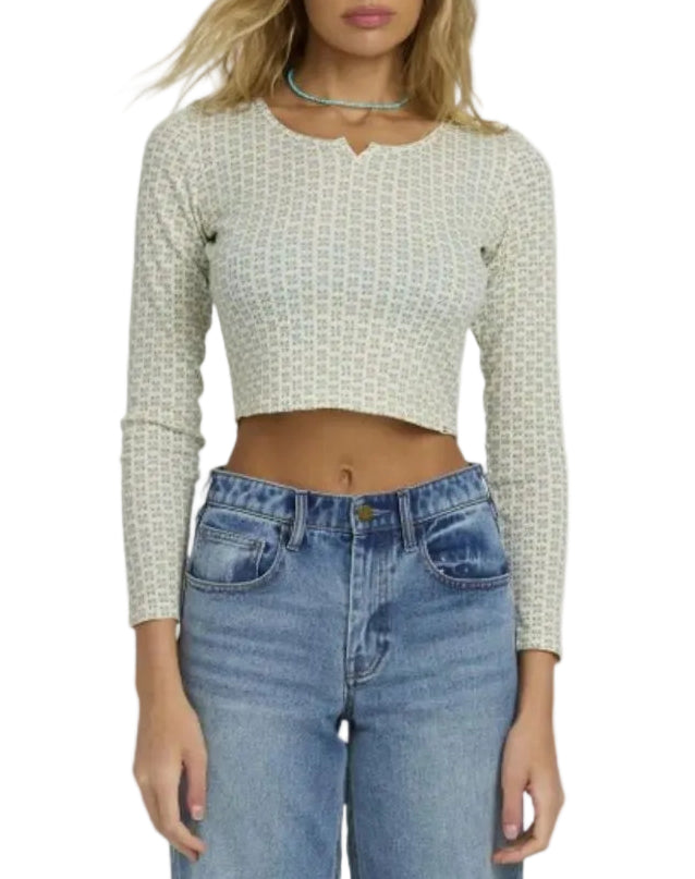 Geometric blooms cover the supersoft thermal knit of this cropped T-shirt cut for a curvy silhouette that skims your figure without fitting too snug.