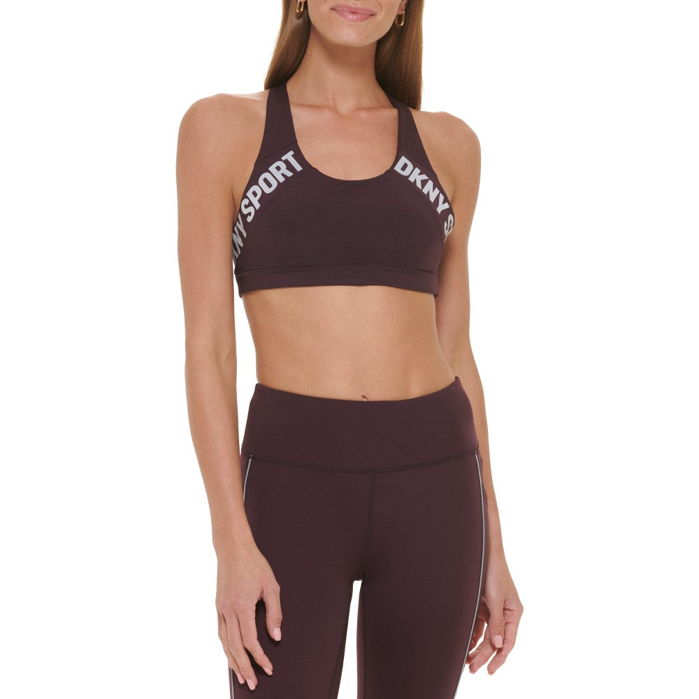 DKNY Womens Reflective Logo Low Impact Sports Bra