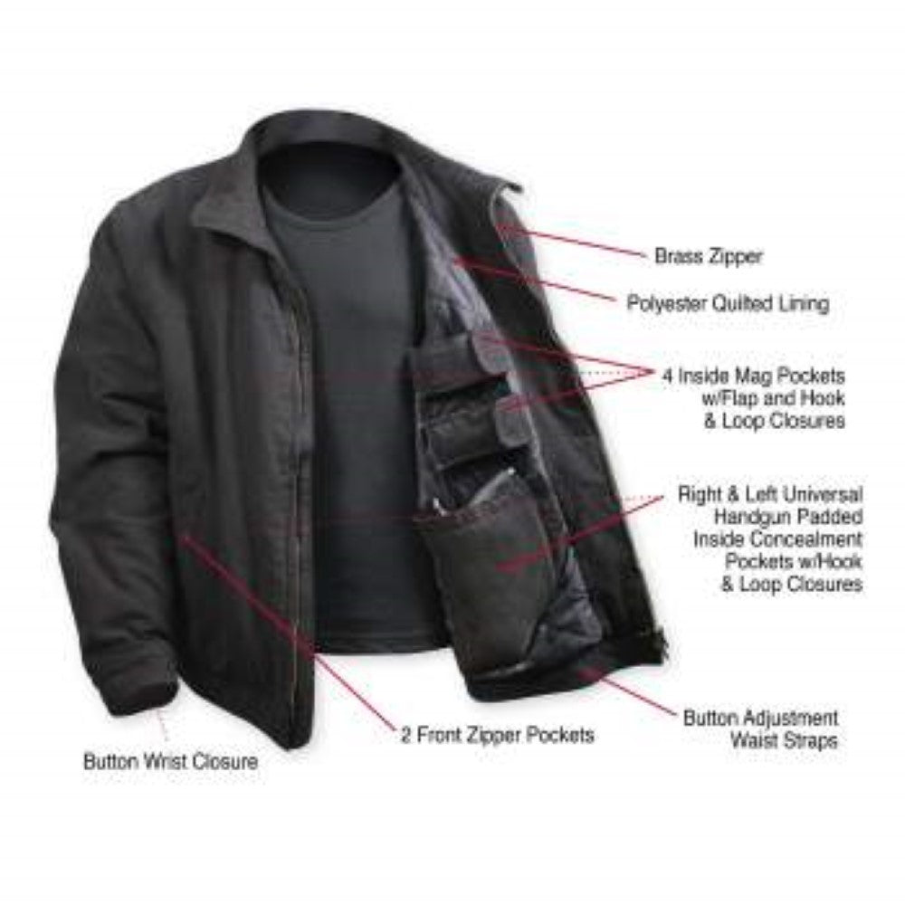 This casual jacket comes with a tactical twist as it features two inner concealment pockets (one on each side) with hook & loop closures and four inner mag pockets with hook & loop flap closure.