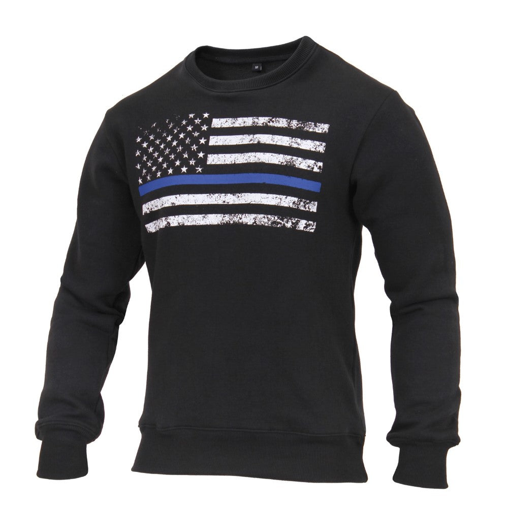 Rothco’s Thin Blue Line Flag Crew Neck Sweatshirt is warm, comfortable, and features a distressed thin blue line flag print on the chest.