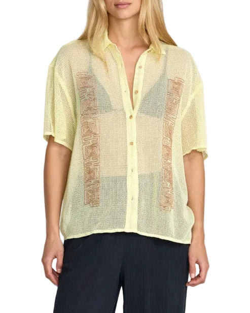 Product Details:Fabric: Cotton fabricFit: Oversized fitFit: Button down frontEmbroidery detail on front panelsScooped hemLogo metal badge25" HPSMaterials 100% Cotton