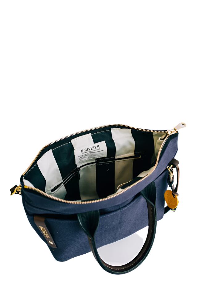 Each R.Riveter handbag takes a journey across the country before arriving at your doorstep. Components are crafted by independent military spouses in their homes around the nation and shipped to R.Riveter's FabShop to be assembled into a one-of-a-kind product.