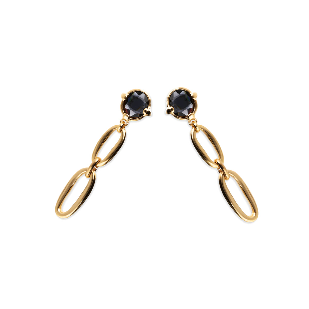 18k gold plated metal alloy long earring with black faceted crystal