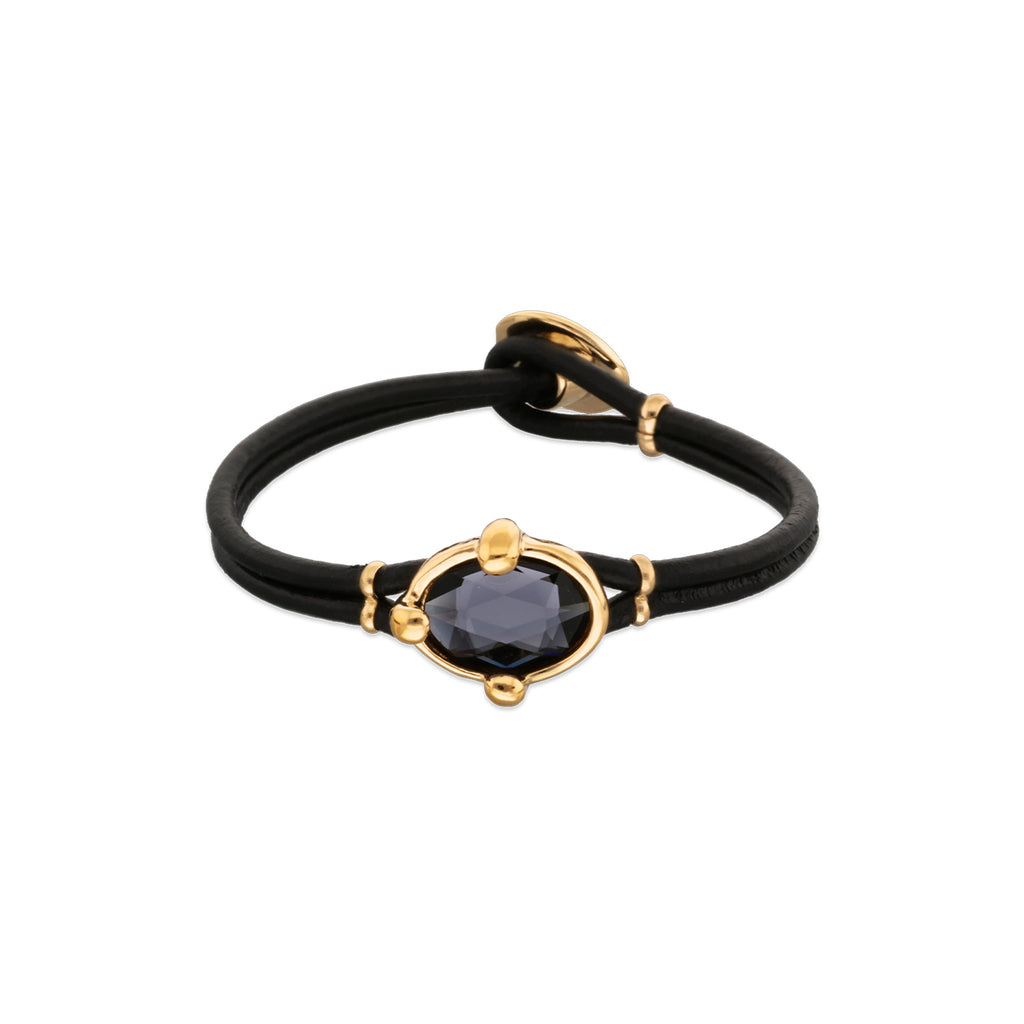 Leather bracelet in black with a grey faceted crystal