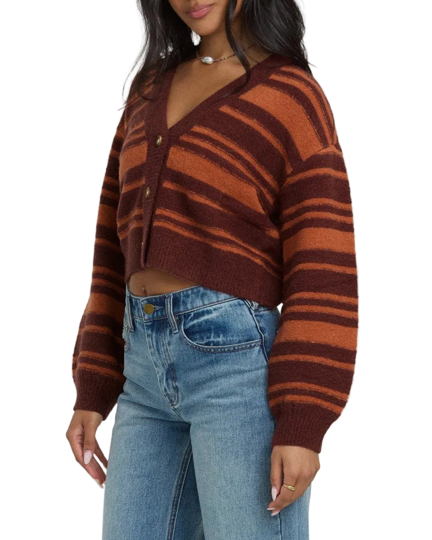 Product Details:Fabric: Nylon, acrylic blend knitRelaxed fit cardiganFront button placketV necklineMetal plateMaterials: 75% Acrylic / 25% Nylon