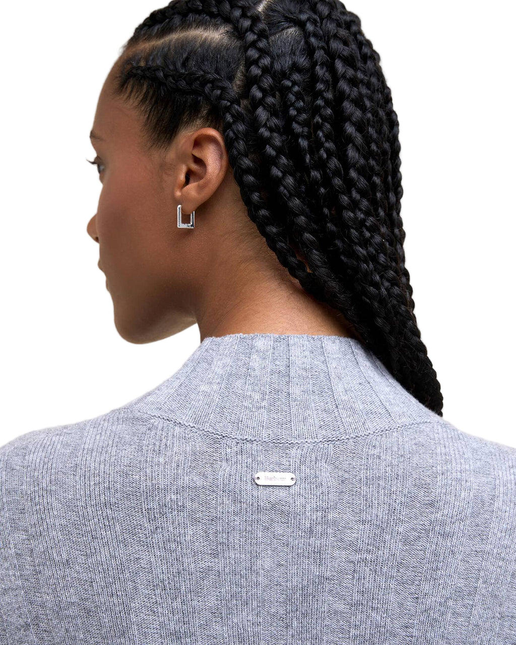 The Barbour Sophia Knitted Midi Dress combines effortless comfort with timeless style. Crafted from a cozy wool blend, this elegant design features a funnel neck, a wide ribbed texture, and relaxed drop shoulders for a contemporary touch. Thoughtful details, such as French shoulder seams and a signature Barbour ID bar at the back, add sophistication and subtle charm. Perfect for everyday wear, this dress offers a seamless blend of ease and elegance, ensuring you feel confident and comfortable all day long.