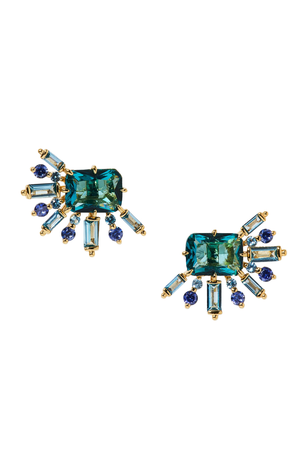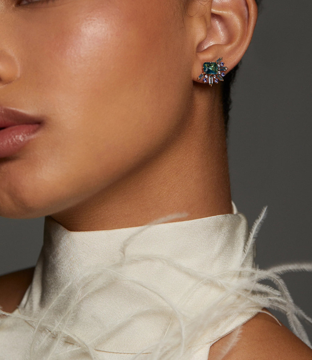 Small in size, big on sparkle. These colorful halo studs feature aqua-to-indigo stones that create a radiant pop of light, perfect for everyday chic or layered with other Stellar favorites.