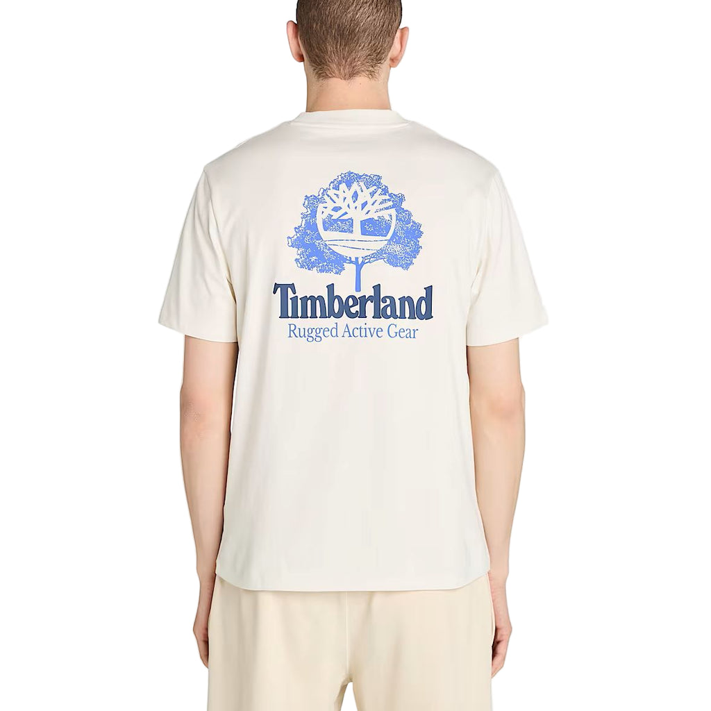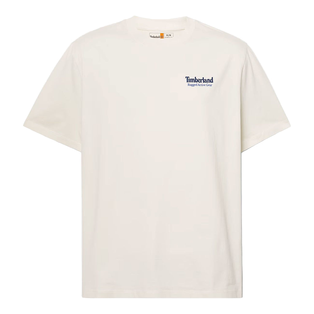 Get moving in the Men's Rugged Active Gear T-shirt. Made with 100% cotton for an authentic fit, these t-shirts have a printed graphic on the back and the Timberland logo on the chest.