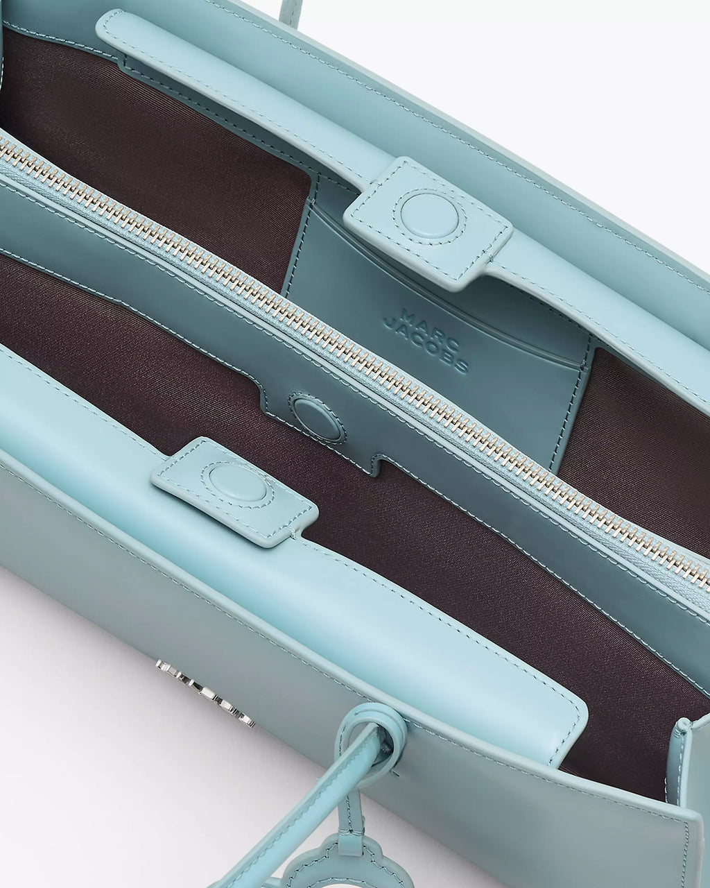 Crafted in high-shine Spazzolato leather, The Glam Mirror Satchel balances youthful energy with evening sophistication. Its sculptural east–west silhouette is sleek, minimal and features stacked metal logo branding, refined leather shoulder straps and discreet magnetic closures. Two compartments, a central zip pocket and internal and external card slots, offer effortless organization. A fixed daisy mirror charm adds playful Marc Jacobs detailing - perfect for touch-ups on the go.