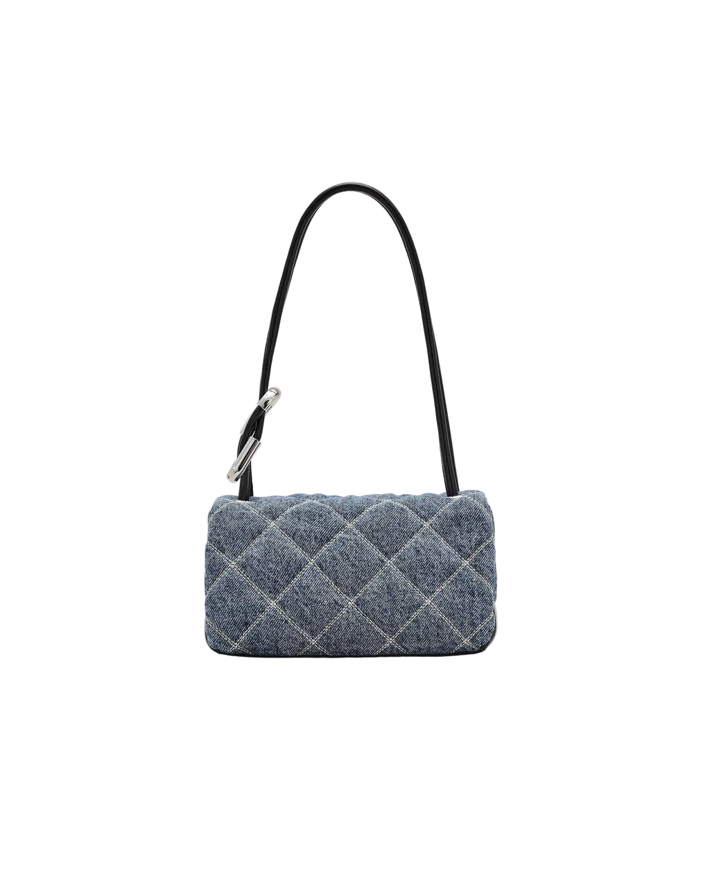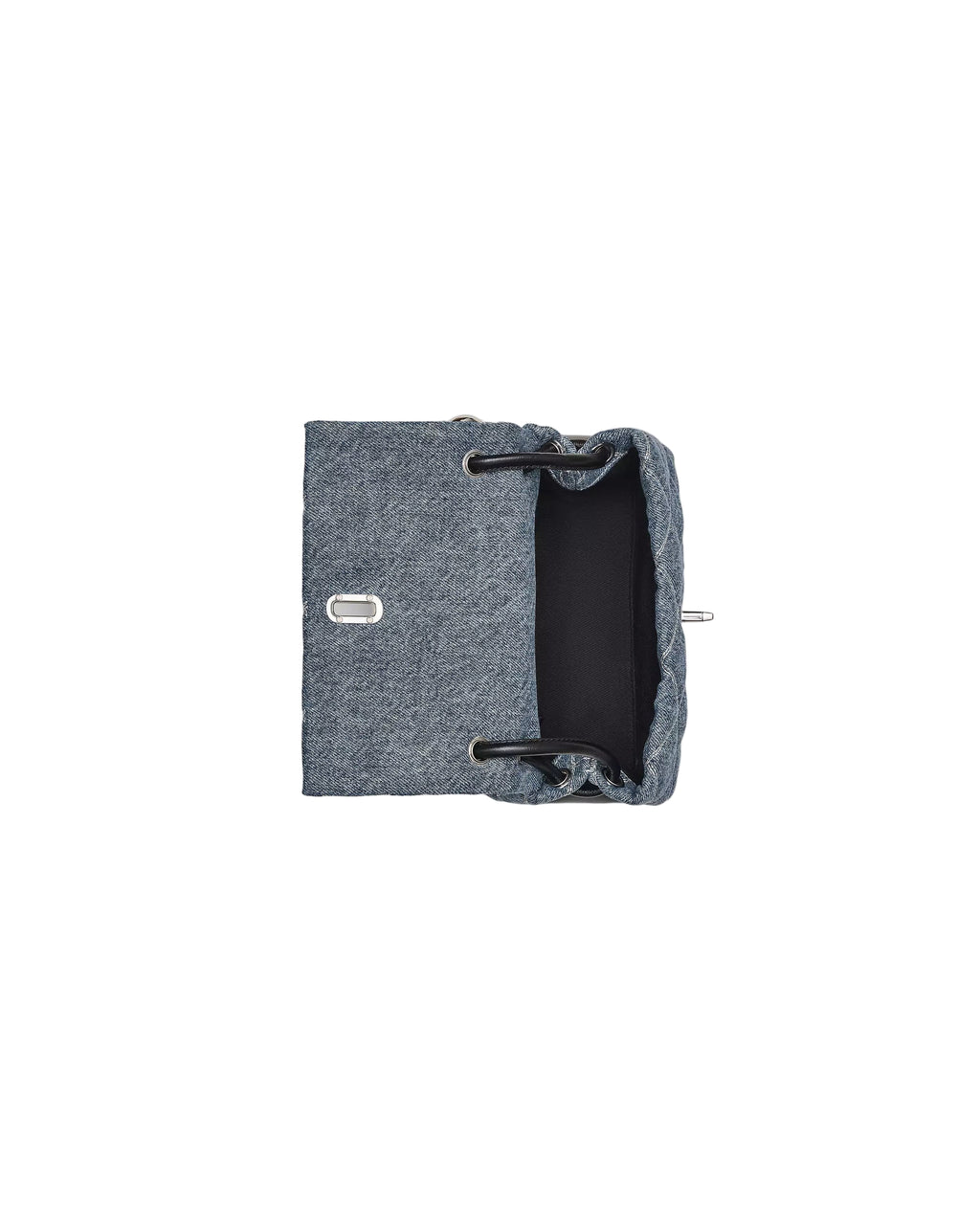 Crafted in vintage-inspired washed denim, this mini bag is finished with a quilted texture. It’s detailed with distinctive Dual hardware, Stam-inspired stitching and a signature metal turnlock closure. The tubular leather straps allow for effortless handheld or over-the-shoulder styling. Compact and organized with an interior zip pocket, this bag effortlessly moves from day to night.