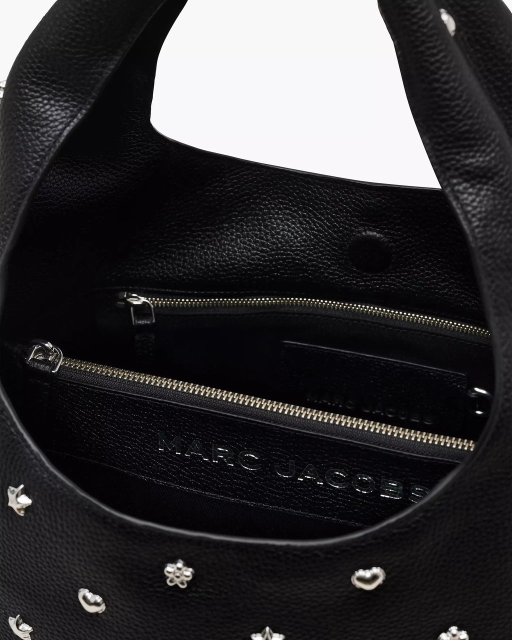 A refined twist on our signature Sack Bag. Crafted in rich full-grain leather, this silhouette is a sleek mix of edgy and sophisticated - covered with Mini Icon studs for just the right dose of playfulness. Inside, find an internal zip pocket, plus a removable pouch to keep your essentials organized. A top handle and magnetic closure keep things effortless and secure, while a leather foil embossed logo patch offers a quiet nod to our iconic branding.