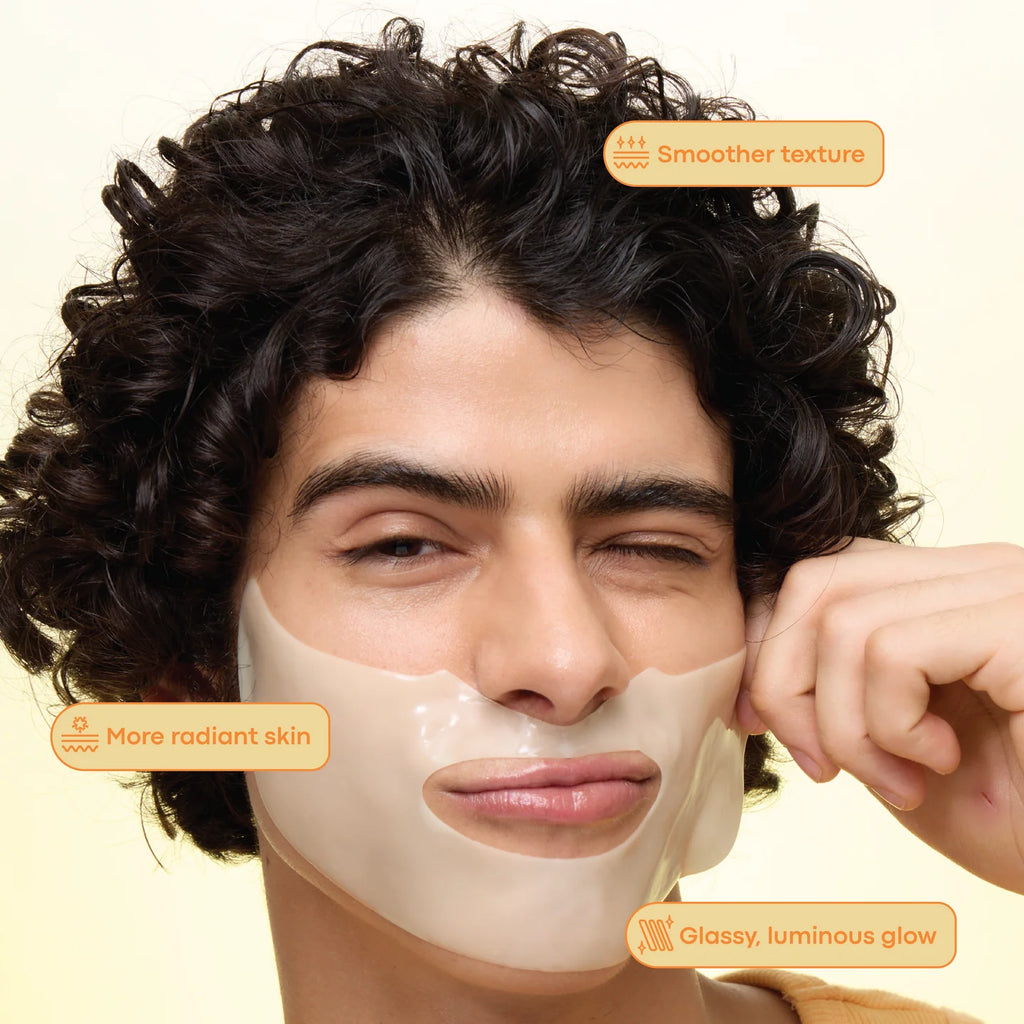 Say hello to your new skincare essential. TONYMOLY Mask Melts are innovative hydrogel treatments that visibly firm, hydrate, and brighten skin—in just 3 hours or overnight. Powered by Korean technology, these masks is custom-shaped to hug the face for a snug, no-slip fit. As the hydrogel melts into your skin and turns transparent, potent K-beauty ingredients are absorbed deep within delivering powerful results with zero mess. A radiance-boosting mask that evens tone and softens texture. Vitamin C and rice extract work together to brighten dull skin and reveal a glassy, luminous glow. Wake up to smoother, plumper, glowier skin exactly where you need it most.