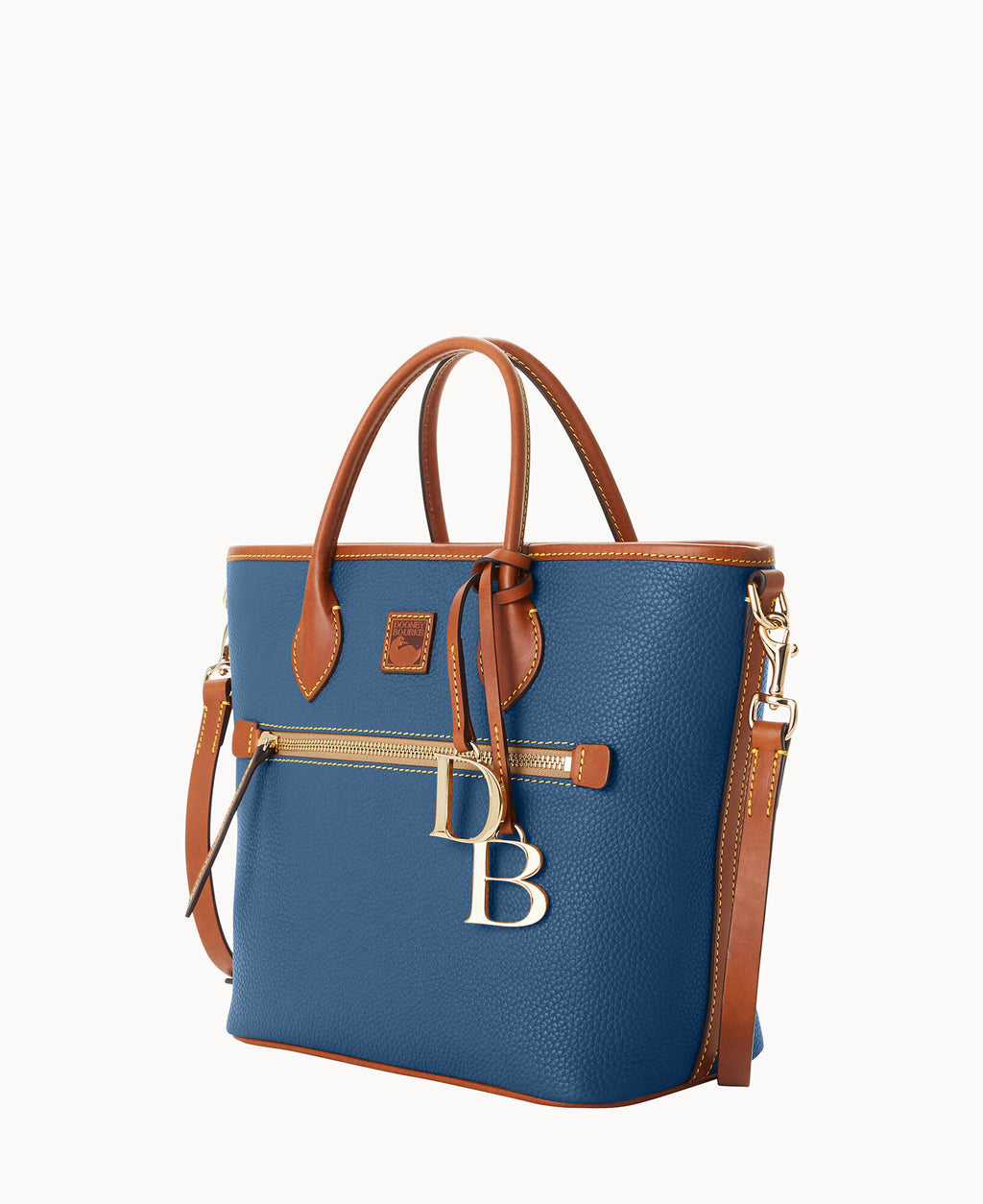 This convertible tote, made from pebble leather with a natural grain that hides any signs of wear, can be comfortably carried as a satchel or crossbody thanks to its many leather straps.