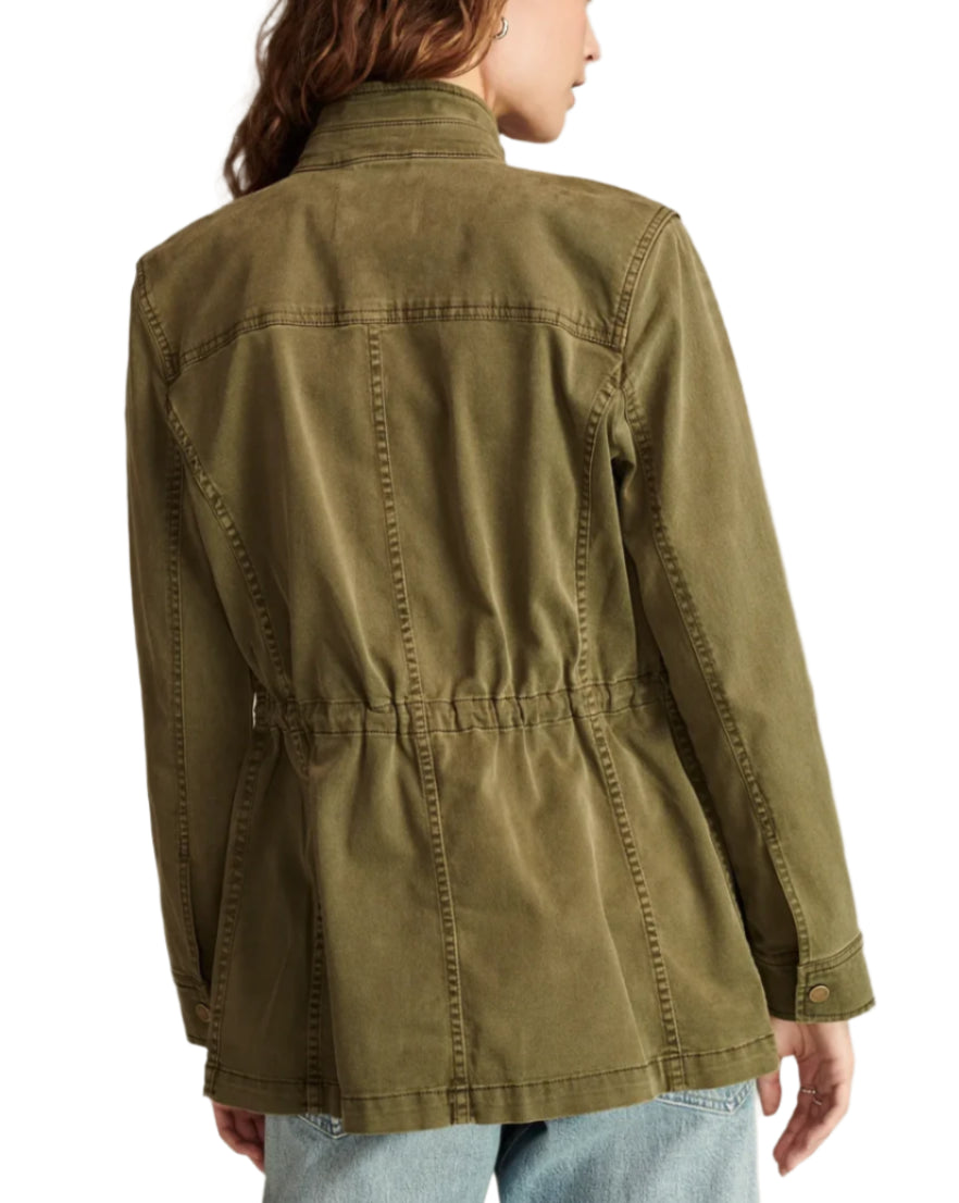 Update your look with this utility jacket featuring a dual button-and-zip front, adjustable drawstring waist and roomy pockets for on-the-go essentials.